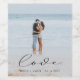 Personalised photo wine label set with your custom photo and elegant script "love" coupled with your own monograms and date in sans serif font