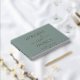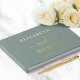 This elegant sage green wedding guest book features your choice of real gold, silver or rose gold foil, your names in classic serif typography joined together by "and" in a chic script with swashes, and your wedding date. You can personalise the title on the spine and add your favourite engagement photo on the back.