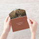 Elegant terracotta all-in-one wedding invitation featuring your photo on top, your first names, "Reception to follow" and "Rsvp" showcased in a chic script, your invitation details in classic serif typography, and a white tear-away RSVP postcard, with all inside text rendered in your choice of genuine gold, silver or rose gold foil. You can adjust the size of the script for longer or shorter names by editing in the design tool.