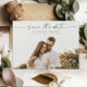 An Elegant Script Photo Wedding Save the Date with horizontal photo and minimal text. The back is a magnetic. Click the personalise button to customise this design.