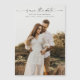 An Elegant Script Photo Wedding Save the Date Magnetic Card with vertical portrait photo and minimal text. Click the personalise button to customise this design.
