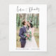 Express your heartfelt gratitude in timeless style with this Elegant Script Photo Wedding Thank You Card. Featuring refined calligraphy, a full photo layout, and minimalistic design elements, this card is the perfect way to thank your guests while showcasing a cherished moment from your big day. Ideal for modern, romantic, or classic wedding themes, it’s fully customisable with your message and photo.