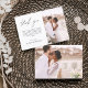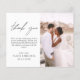 Express your heartfelt gratitude in timeless style with this Elegant Script Photo Wedding Thank You Card. Featuring refined calligraphy, a full photo layout, and minimalistic design elements, this card is the perfect way to thank your guests while showcasing a cherished moment from your big day. Ideal for modern, romantic, or classic wedding themes, it’s fully customisable with your message and photo.