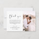 Express your heartfelt gratitude in timeless style with this Elegant Script Photo Wedding Thank You Card. Featuring refined calligraphy, a full photo layout, and minimalistic design elements, this card is the perfect way to thank your guests while showcasing a cherished moment from your big day. Ideal for modern, romantic, or classic wedding themes, it’s fully customisable with your message and photo.