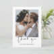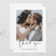 Express your heartfelt gratitude in timeless style with this Elegant Script Photo Wedding Thank You Card. Featuring refined calligraphy, a full photo layout, and minimalistic design elements, this card is the perfect way to thank your guests while showcasing a cherished moment from your big day. Ideal for modern, romantic, or classic wedding themes, it’s fully customisable with your message and photo.
