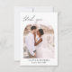 Express your heartfelt gratitude in timeless style with this Elegant Script Photo Wedding Thank You Card. Featuring refined calligraphy, a full photo layout, and minimalistic design elements, this card is the perfect way to thank your guests while showcasing a cherished moment from your big day. Ideal for modern, romantic, or classic wedding themes, it’s fully customisable with your message and photo.