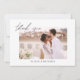 Express your heartfelt gratitude in timeless style with this Elegant Script Photo Wedding Thank You Card. Featuring refined calligraphy, a full photo layout, and minimalistic design elements, this card is the perfect way to thank your guests while showcasing a cherished moment from your big day. Ideal for modern, romantic, or classic wedding themes, it’s fully customisable with your message and photo.