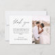Express your heartfelt gratitude in timeless style with this Elegant Script Photo Wedding Thank You Card. Featuring refined calligraphy, a full photo layout, and minimalistic design elements, this card is the perfect way to thank your guests while showcasing a cherished moment from your big day. Ideal for modern, romantic, or classic wedding themes, it’s fully customisable with your message and photo.