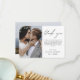 Express your heartfelt gratitude in timeless style with this Elegant Script Photo Wedding Thank You Card. Featuring refined calligraphy, a full photo layout, and minimalistic design elements, this card is the perfect way to thank your guests while showcasing a cherished moment from your big day. Ideal for modern, romantic, or classic wedding themes, it’s fully customisable with your message and photo.
