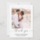 Express your heartfelt gratitude in timeless style with this Elegant Script Photo Wedding Thank You Card. Featuring refined calligraphy, a full photo layout, and minimalistic design elements, this card is the perfect way to thank your guests while showcasing a cherished moment from your big day. Ideal for modern, romantic, or classic wedding themes, it’s fully customisable with your message and photo.