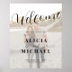 Modern minimalist black and white simple classic custom overlay photo wedding welcome sign printable poster template featuring a handwritten bold chic calligraphy script. +++++++++++++++++ Ideal for elegant classy stylish budget affordable wedding celebration or anniversary.