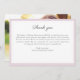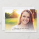 A beautiful funeral thank you card to express your family's gratitude. The front features "Thank you" in an elegant script calligraphy font and your custom message. The backside features a photo and custom text. Easily change the background colour to suit your style. Elegant and classic - this template makes it easy to say thank you to your funeral guests for their kind words, cards and support. (You can also delete the typed message and leave the space blank for a handwritten message.)