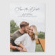 This Save the Date announcement card features an elegant script heading, your favourite photo and your custom text. Use the template to add your information.
