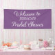 Cute, elegant script purple bridal shower welcome banner, personalised with the name of the bride-to-be. The background colour of this banner is customisable with Zazzle's design tool, so whatever your bridal shower colour theme, you can create your banner to match. Contact me for help with customisation or to request additional products for your suite.