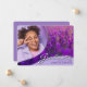 A unique custom photo graduation announcement card, featuring design elements of elegant handwritten style script with modern text. The graduates photo is enhanced by beautiful purple lavender flowers on a violet background. The back of the card offers personalised text spaces for information about the graduation and future journey. You can easily customise the primary and text colours on the back of the card to suit your needs. To see more items like this, visit my store here at "www.Zazzle.com/LakeViewCardCo". Thanks