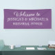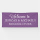 Cute, elegant script purple Rehearsal dinner welcome banner, personalised with the name of the bride and groom to be. The background colour of this banner is customisable with Zazzle's design tool, so whatever your rehearsal dinner colour theme, you can create your banner to match. Contact me for help with customisation or to request additional products for your suite.