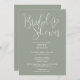 This sage green elegant script bridal shower invitation can be personalised with all your special event information and registry QR code on the reverse. Designed by Thisisnotme©