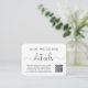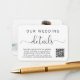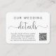 Elegant wedding details enclosure card featuring "details" in a stylish calligraphy script with swashes. Input your wedding website address to create a QR code that your guests can scan to obtain all of your wedding details such as directions and accommodations. On the back, your photo is overlayed with your names and wedding date joined together by a heart.