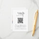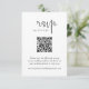 Black and white minimal style rsvp card with a modern elegant calligraphy script. The QR code can be scanned to access the wedding website. The backside has a place for your photo with a light grey border and the couple's name underneath or can be left blank.