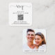 Elegant wedding RSVP square enclosure card with "rsvp" in a stylish script with swashes. Input your wedding website address to create a QR code for guests to scan to RSVP online. The back features your photo overlayed with your first names and wedding date joined together by a heart.
