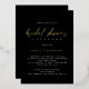 Elegant Script Real Gold Foil Black Bridal Shower. The elegance of classic black with real foil in gold for Bridal Shower, which is in a stylish set script. and bride to be’s name which you can easily personalise, along with the other details.