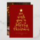 Elegant Script Red Gold Real Foil Merry Christmas