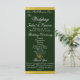 This romantic design features an elegant emerald green background with ribbon borders, wedding ceremony details & thank you on the front with wedding party members on the back. Available in several colours for your wedding theme. (Ribbon is simulated in the artwork). Designed to coordinate with the "Two Shall Become One - Silver & Gold" Wedding Collection. To change details, click «Personalise». To move the text or change the text size, font, or colour click «Click to customise further»