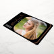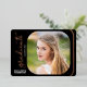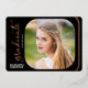 This elegant script graduation party invitation features real rose gold foil on a black background. The square photo on the front is accented with rounded corners. The backside offers a second vertical photo and custom text for you to add your party invitation details.