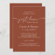 Elegant Script Rustic Terracotta Wedding Invitation. This chic elegant wedding invitation features modern script and typography and reads, "Nothing Fancy, just love" with a simple monogram on the back.