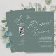 Elegant Script Sage Green Minimalist QR Code Rehearsal Dinner Invitation Card. Celebrate your special day with this elegant and beautiful wedding invitation card to beautify your special occasion. All the texts are pre-arranged for you to personalise easily and quickly with your own details. If you need further customisation or matching items, please let us know – we would love to help.