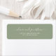 Elegant minimalist chic handwritten script couples' names wedding return address labels in simple sage green.