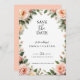 Announce your special day with timeless elegance using this beautifully balanced save-the-date card. A soft floral border of pastel roses and lush greenery gently frames a clean white centre, providing the perfect space for your personalised message. Designed with refined script typography and a minimal yet romantic aesthetic, this layout is ideal for spring weddings, garden ceremonies, or couples who appreciate understated floral charm. A graceful way to set the tone for your celebration.