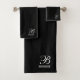 Elegant Script Serif Monogram Black Bath Towel Set
