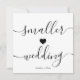 This is a simple black and white script Smaller Wedding Announcement Card to inform your guests that you have decided to downsize your wedding, have a smaller wedding, micro wedding, intimate wedding due to certain circumstances.