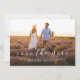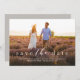 Save the date! You're getting married! You're engaged and want to share the big news! With simple but elegant typography, this save the date photo card is a classic design that features a single horizontal photo. The white wording is placed at the bottom of the frame along with a darkening filter to allow for better legibility. The back is a soft grey beige with a subtle dot pattern.