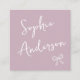 Make a lasting impression with this elegant square business card featuring a soft mauve background, flowing handwritten script, and a delicate bow illustration. Perfect for beauty professionals, boutique owners, planners, creatives, and anyone who loves a refined, feminine aesthetic.