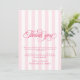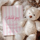 Elegant pink and white girl baby shower thank you cards offer a refined and heartfelt way to express gratitude to guests. Featuring soft vertical stripes in soft pink and white, this sophisticated design is highlighted by graceful script and serif typography that beautifully balances elegance and warmth. The "Thank you" heading in flowing calligraphy draws the eye, while the personal message below communicates appreciation with sincerity and style. Perfect for parents seeking a classic and timeless thank you card to match a coordinated pink baby shower theme, this design radiates charm and polished simplicity ideal for honouring thoughtful gifts and warm wishes.