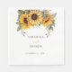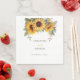 Elegant Script Sunflower Wedding Napkins. Embrace the charm of simplicity with our minimalist, elegant sunflower wedding napkins. Featuring in a dark shade of green, the design is adorned with three graceful sunflowers on the front, symbolising happiness and warmth. This simple design perfectionly complements the natural theme. Ideal for a rustic or garden wedding, this napkin strikes a perfect balance between understated sophistifiction and natural beauty.