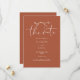 This elegant terracotta save-the-date invitation can be personalised with your information in chic typography with your wedding website QR code and details on the reverse. Designed by Thisisnotme©