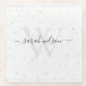 Elegant Script Terrazzo Stone Ivory Grey Monogram Glass Coaster
