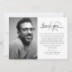 Show your heartfelt appreciation to those who have stood by you during a difficult time with our elegant funeral thank you cards. Featuring a custom photograph of your loved one on a clean white backdrop, the words 'THANK YOU' in beautiful script, and customizable space for your personal message, name, and date/s. These cards are the perfect way to express your gratitude to friends and family. Every detail thoughtfully crafted to honor the memory of your loved one and convey your sincerest thanks.