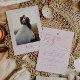 Modern and elegant wedding thank you card featuring a script text that says "thank you" with a heart. You can add a picture on the back with the couple's initials. Pink background.