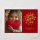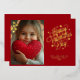 Elegant script Happy Valentine's Day hearts real gold foil 1 photo holiday flat card. Perfect for personalising and sending out to family and friends.