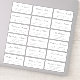 Customisable modern and chic black and white address label stickers for your wedding guest list. Names are written in an elegant script and addresses in classic serif typography. Each sheet contains 18 stickers -- when finished with one, place it in your cart and start a new sheet the next 18 guests. If a particular name or address is large or small, you can adjust the font size up or down for that label by editing in the design tool.