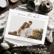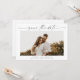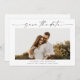 An elegant script photo save the date with horizontal photo and minimal text. Click the personalise button to customise this design.