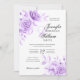Elegant Script Wedding Purple Floral w/ QR RSVP Invitation