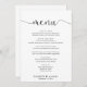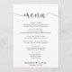 Elegant wedding reception dinner menu with "menu" in a stylish calligraphy script with swashes, your menu in simple modern typography, your first names joined by a heart and your reception date.