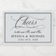 Toast the bride and groom with sparkling wine with personalised labels including their names and wedding date. This design has lovely calligraphy script text spelling out the word Cheers along with additional text showing the bride and groom's names and wedding date. The background colour shown here is a silver-grey and can be customised to other colours if desired.