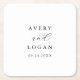 This elegant script wedding favour square paper coaster is perfect for a simple wedding. The minimalist black and white design features fancy romantic typography with modern glam style. Customisable in any colour. Keep the design minimal and classy, as is, or personalise it by adding your own graphics and artwork. Personalise the label with the names of the bride and groom and the wedding date.