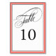 Simple and elegant, this table number card features beautiful calligraphy text with script flourishes and your desired table number surrounded by a border in the trendy shade of coral called "living coral". You can change this background colour to any other colour to match your wedding or event colour scheme by choosing "customise further" and selecting the background colour of your choice for both the front and back of this table card. You will need to create a separate table number card for each table at your event, i.e., personalise the number with 1 and add to card, personalise again with the number 2, add to cart, and so on until you have a separate card for each table.